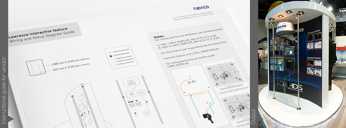 Exhibition work for Navico EMEA (Europe, Middle East and Africa) done whilst working at Navico UK. Close collaboration between vendors and Navico staff aided the success of this impressive stand.