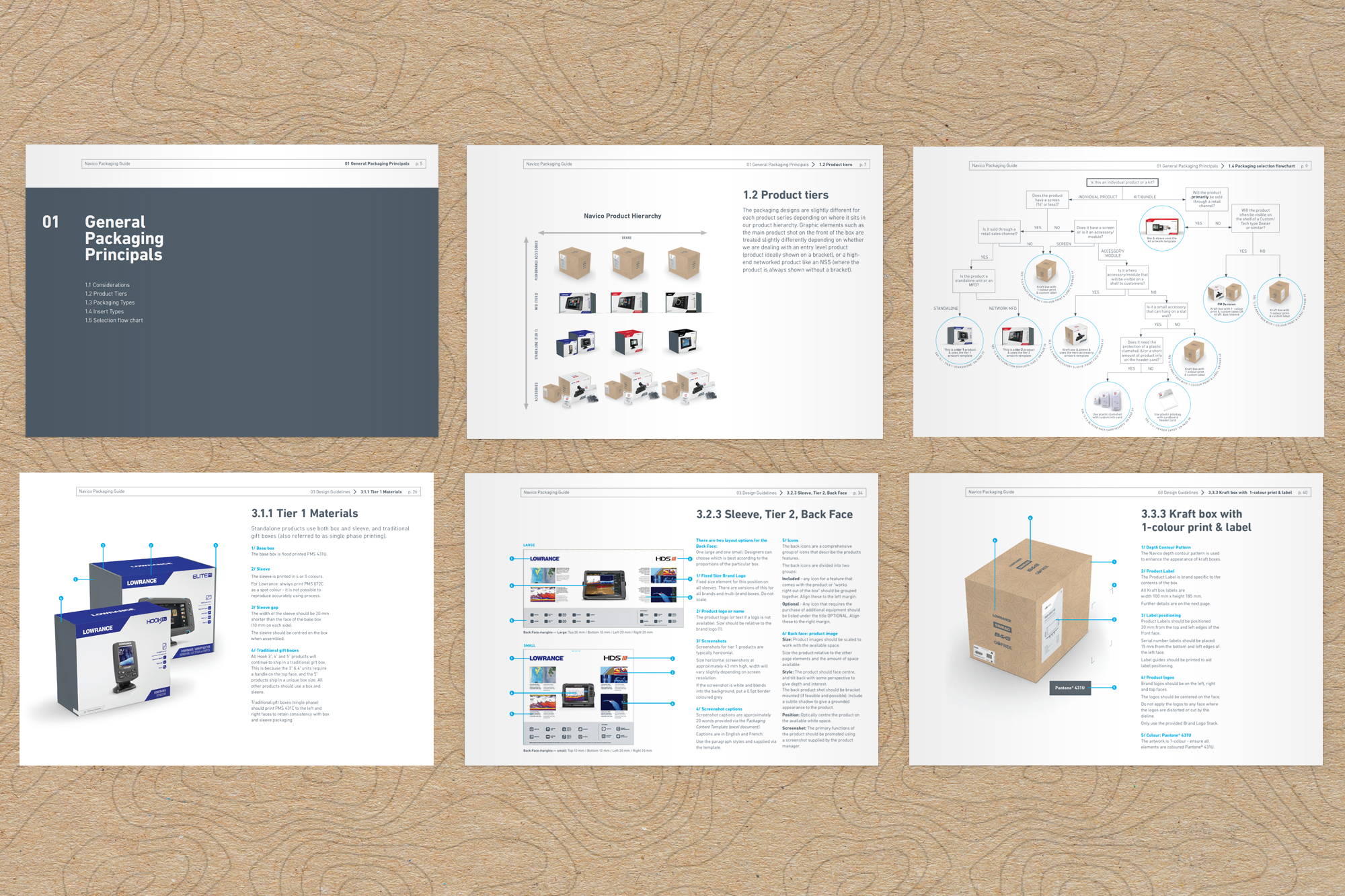 The packaging guidelines are a detailed reference guide for all business facets including marketing, sourcing and product management. Thoroughly covering all details of the packaging system, these guidelines have ensured a successful and sustained level of professionalism for the entirety of Navico’s packaging.
