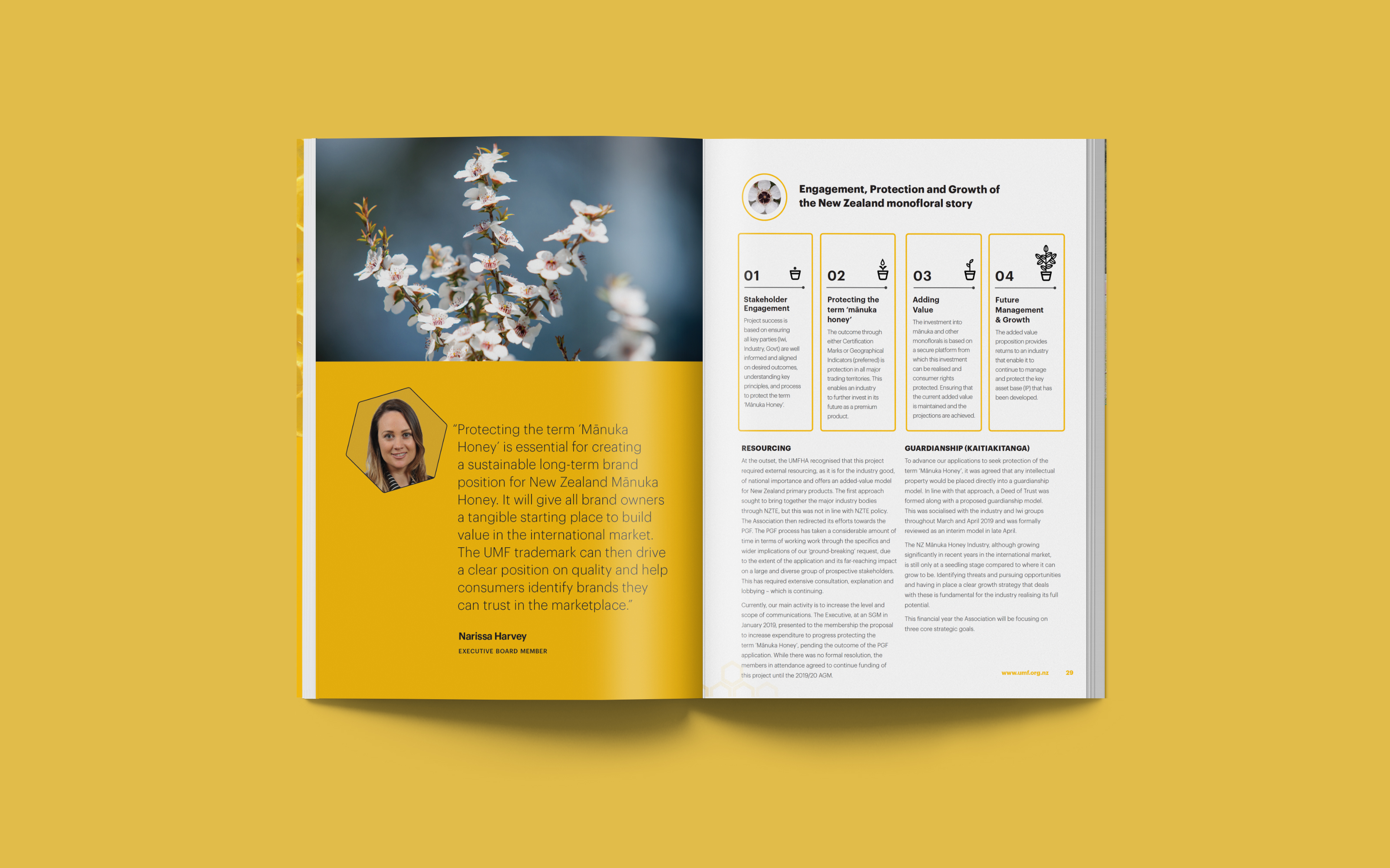 A variety of branded communications for UMF Honey Association. Designed at Streamline Creative.